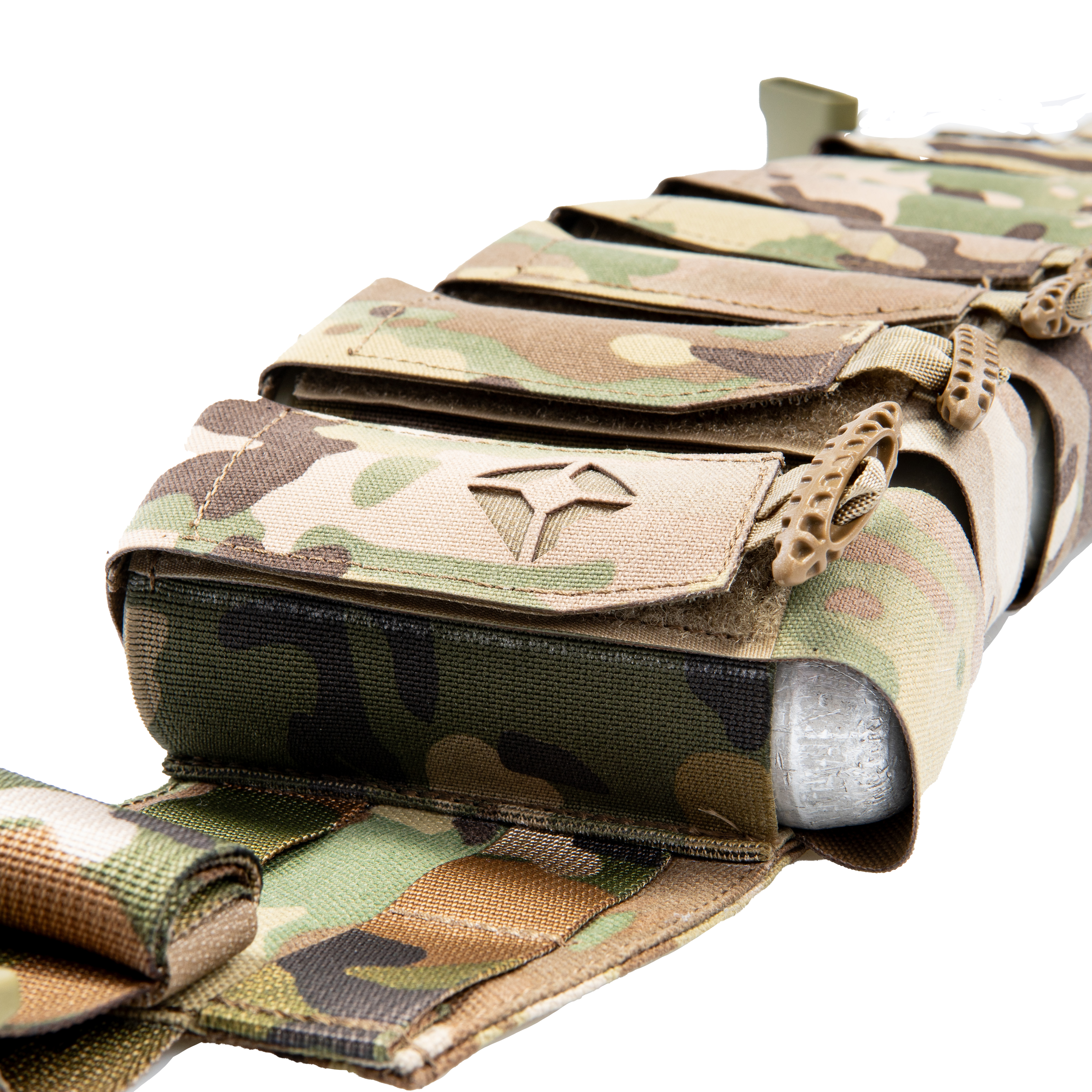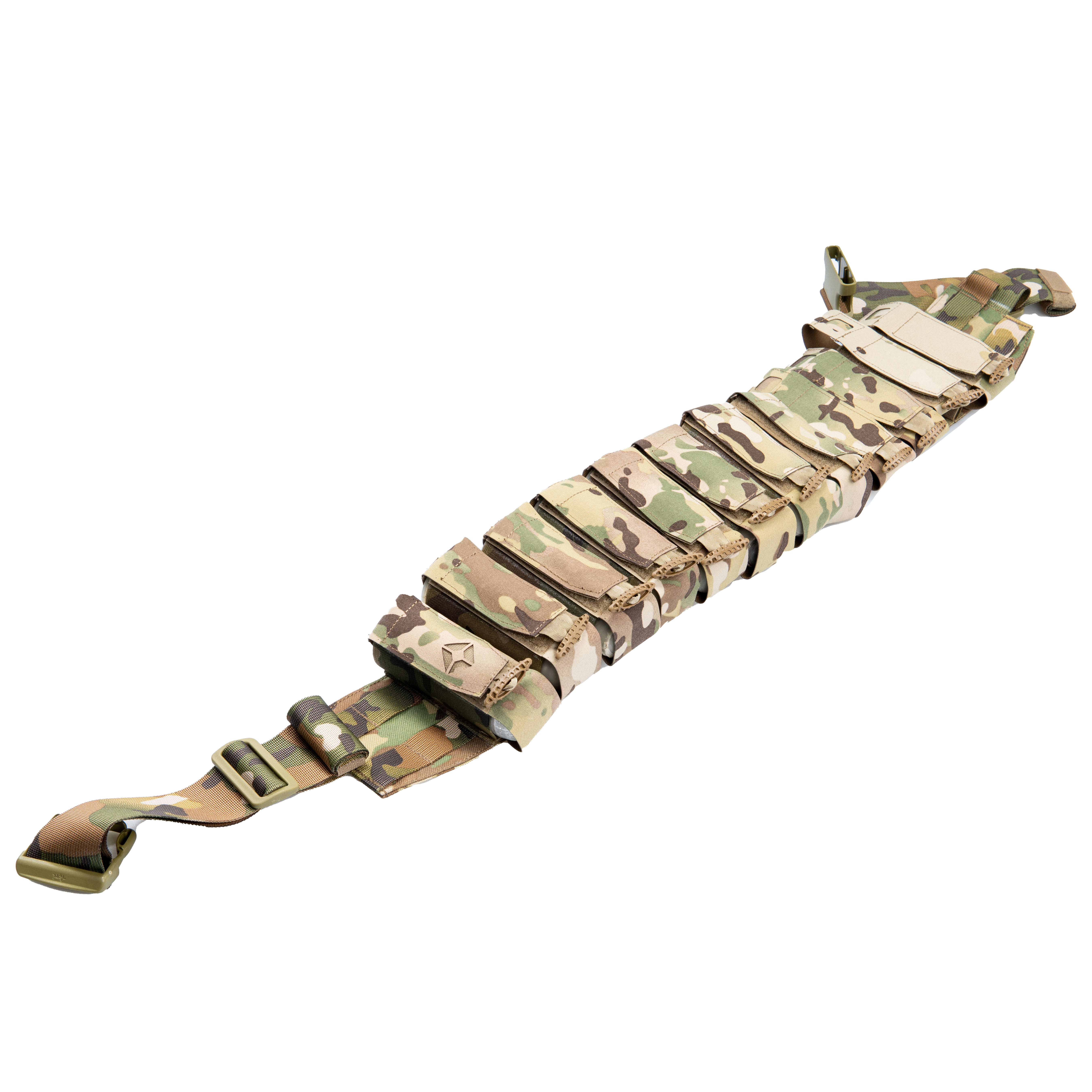 5. С обеих сторон бандольеры имеются «уши» на которых расположены 2 ячейки молле в высоту и 2 ячейки в длину для размещения дополнительного снаряжения при необходимости;