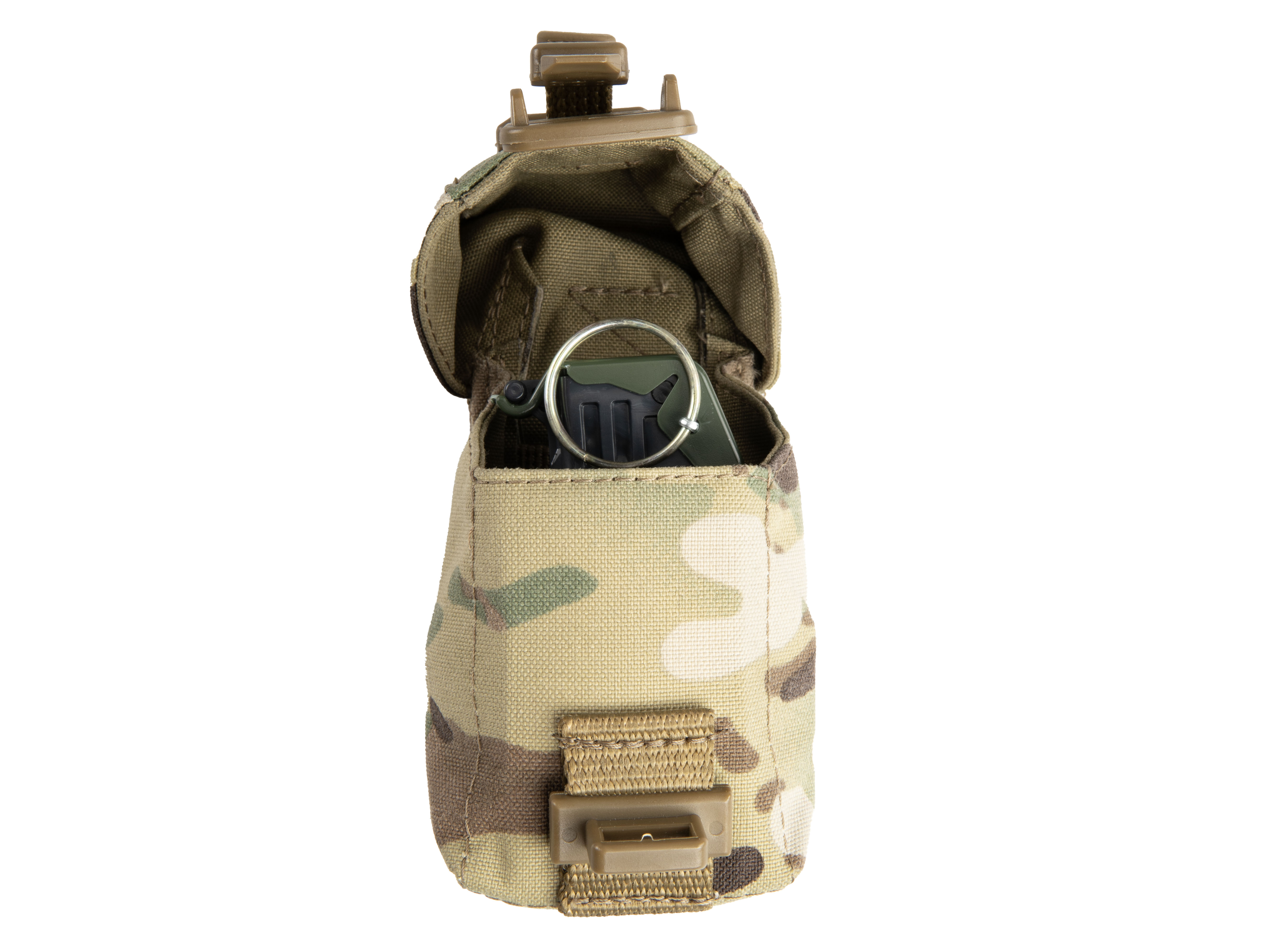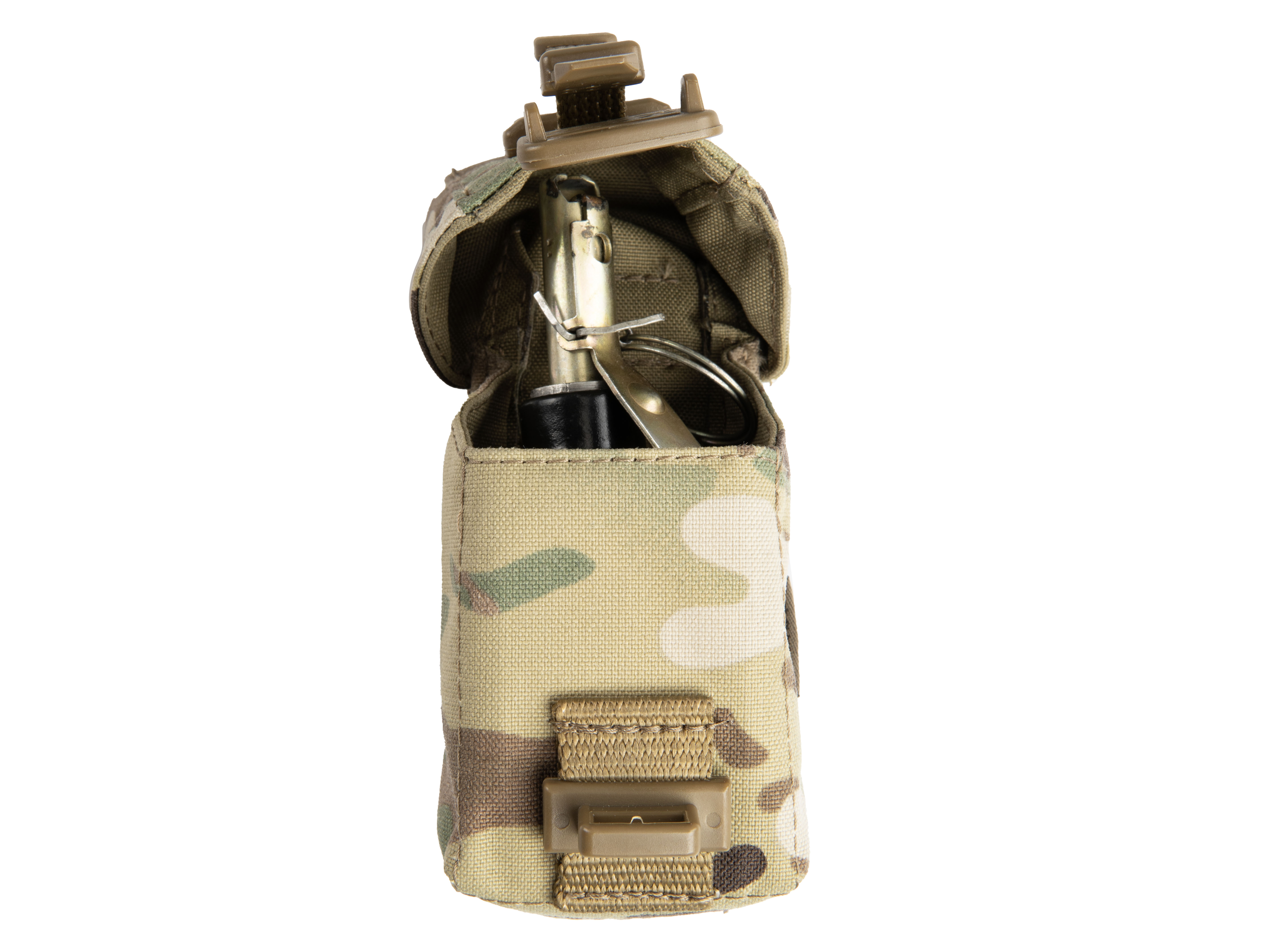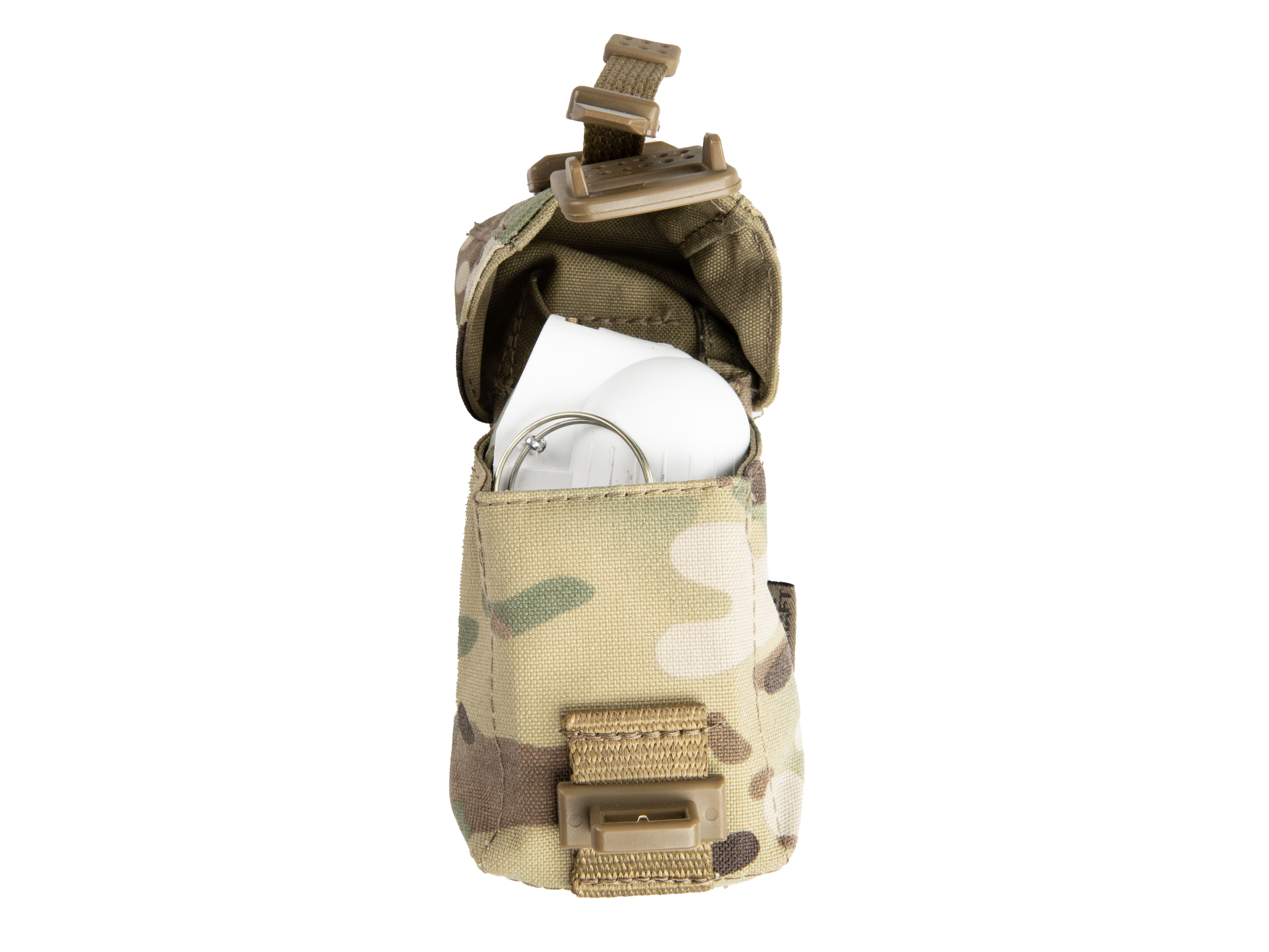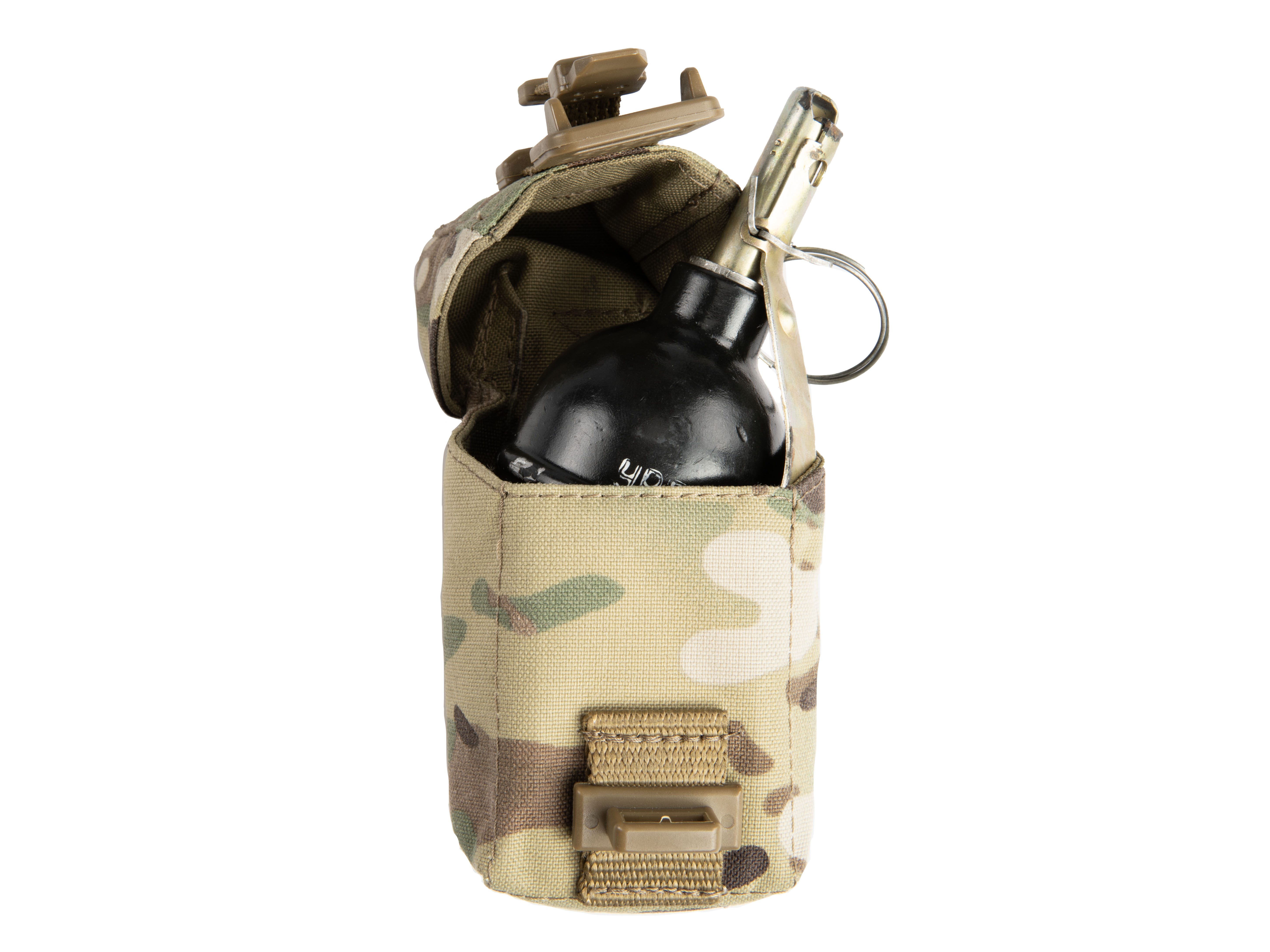 Гранатный подсумок МК-5 предназначен для переноски гранат Ф-1, РГД-5, РГО (в том числе М67) или любых других схожих габаритов. На спинке присутствует стропа куда можно убрать кольцо гранаты чтобы случайно не зацепиться при транспортировке.